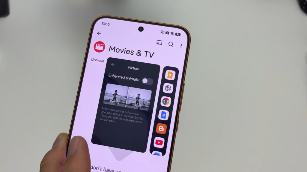 前作POCO F7では非対応だったフレーム補完機能が、今作では利用可能になりました。動画を非常に滑らかに再生できるため、特に動きの多いスポーツ中継やライブ映像の視聴で威力を発揮します。
