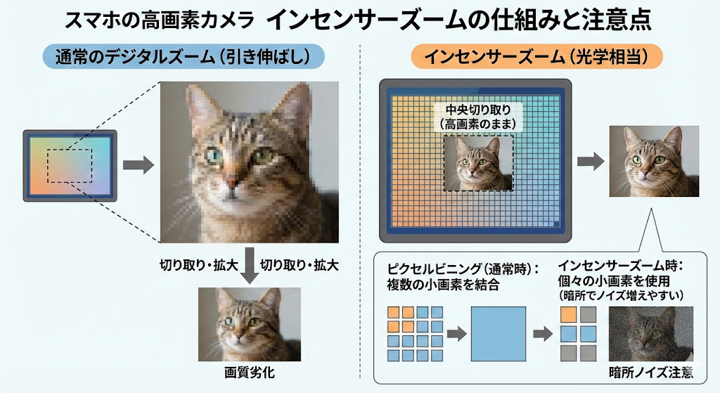 高画素なセンサーを搭載していますので、通常のデジタルズームよりも高画質なインセンサーズーム(光学相当ズーム)が可能です。