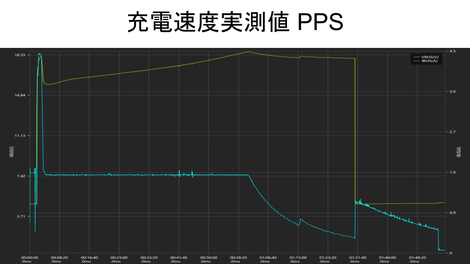 PPSでも充電速度を測定しました。充電時間は約1時間50分でした。